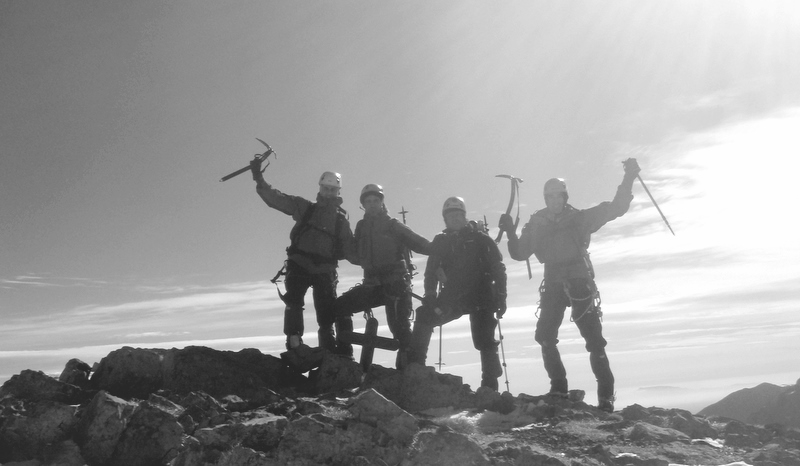 Ens feim ràpidament un parell de fotos. Però entre la felicitat, el vent i uns núvols que, ara sí, que pareix que venen cap a nosaltres, ens oblidem a fer-nos la foto amb el logo del grup, llàstima. Tirem cap al Coll de la Canal de Cristall abans no arribi la boira i el mal temps.