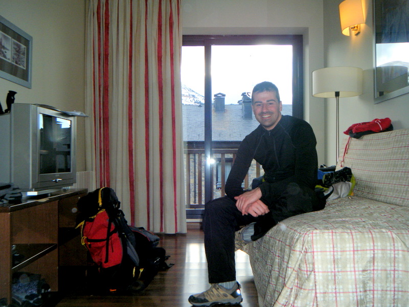 D'Estana a Martinet, desfent camí per anar cap a la Molina, encara que errem camí i en comptes d'anar cap a Alp i la Molina tirem cam a Puigcerdà. Pel camí telefonem al nostre apartahotel i intentem adelantar la nostra entrada, que tenim reservada per demà, però no tenim èxit. Això de la setmana blanca de Palma ha fet que estigui ple tots aquest dies. La Molina és una estació d'esquí familiar i molt visitada pels mallorquins, que està a prop de Barcelona (un altre punt positiu per ser triada pel producte nacional. Bé, no hi ha sort amb la nostra primera opció, així que tirem d'Internet al mòbil i trobem lloc a Alp. Truquem a l'hotel Roca que ens confirma que tenen habitacions disponibles, cap allà que ens anem!. L'hotel Roca és un hotel de dues estrelles que, abans d'aquest viatge, no coneixiem (www.hotelroca.net), però que tots acabem coincidint que repetirem en cas de tornar per aquesta zona. Arribem a Alp i, sense molts de problemes, trobem l'hotel que està pel centre del poble. Deixem el cotxe a l'aparcament de l'hotel, que està a uns vint metres del mateix hotel. Feim l'entrada amb un tracte correcte, ens expliquen els horaris i ens donen les habitacions 303 i 304. Les habitacions estan molt bé, d'una grandària còmoda, la cambra de bany amb assecador, calefacció, tele amb pantalla plana... Molt bé!! Després de donar-nos una dutxa calenteta, quina passada, el meu germà i jo donem una volta pel poble. Tornem a l'habitació de n'Estorki i en Xisco per veure junts el capítol d'aquest diumenge de Al Filo de lo Imposible. És un dels capítols d'aquesta darrera temporada, el programa va acompanyar a n'Edurne Pasaban quan intentava acabar els catorze vuitmils, abans de convertir-se en la primera dona en tot el món en aconseguir-ho. Quan acaba el programa ens anem a sopar a fora de l'hotel, ja que l'hora d'entrada al restaurant de l'hotel ja s'ens ha passat. Sopem a una cafeteria-restuarant que hi ha a prop, i parlem de tot un poc. El menú d'allò més muntanyer... hamburguesa i sandwichs amb cervessa i cola.